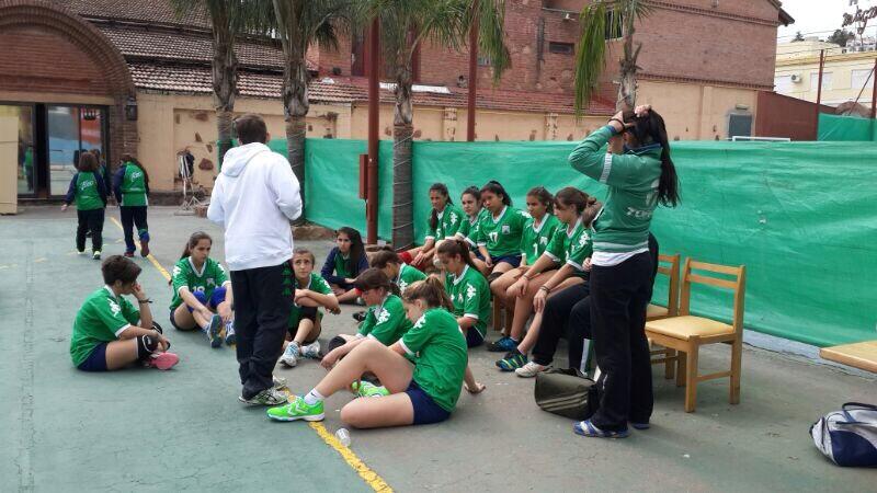 Entretiempo de menores damas de @FCOhandball jugando contra Chile en el Monaco.