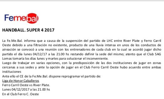Comunicado de Femebal sobre la reprogramación del partido: