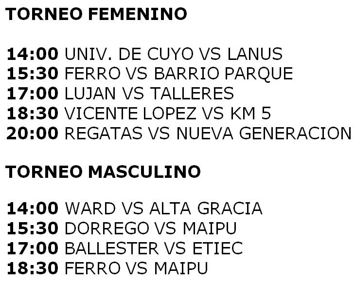 18:30 FERRO VS ESC/MAIPU Varones, cancha 1.